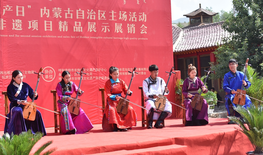 6月9日上午,2018年“文化和自然遗产日”内蒙古自治区主场活动暨呼和浩特第二届非遗项目精品展示展销会活动在呼和浩特市莫尼山非遗小镇举办。应呼和浩特市非物质文化遗产保护中心邀请,内蒙古师范大学文化产业发展研究中心组织我校音乐学院的9名马头琴专业的大学生参加了活动开幕式表演,并观摩和参与了非遗精品展示活动。
