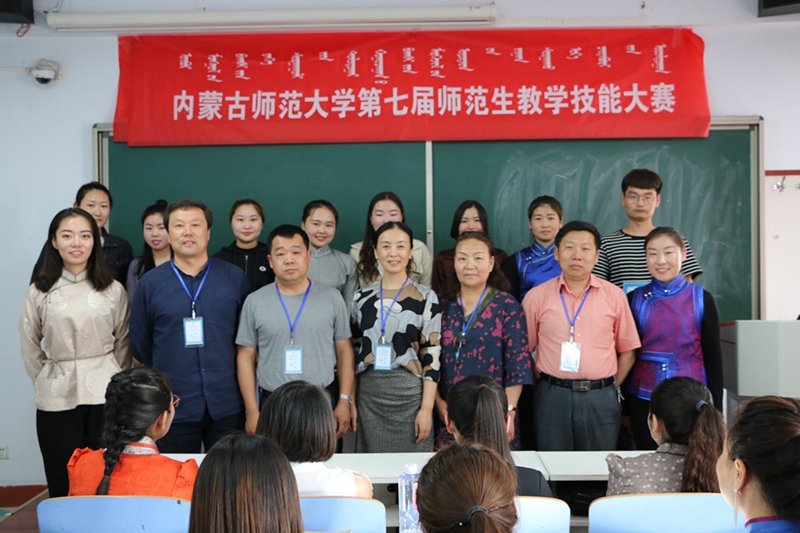 全日制教育硕士文科蒙语组获奖选手与评委合影
